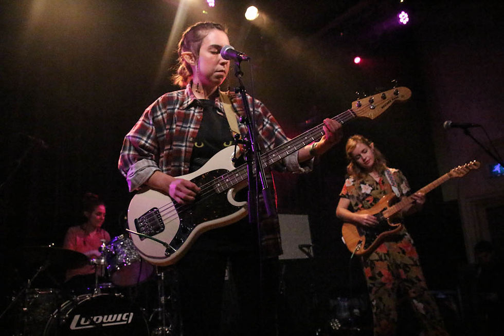 Als één band de hype waar moest maken, dan was het wel Chastity Belt. Deze vier dames uit Seattle brengen op deze bijzondere Halloween-avond (de meisjes zijn zelfs verkleed als lieflijke elfjes) voor het eerst een bezoek aan onze hoofdstad. De band, die zijn punk-imago al snel ontkracht met schattige bloemenoutfits maakt lekker in het gehoor liggende niks-aan-de-hand-nummers die neigen naar upbeat slackerpop. Ondanks de aandoenlijke uitstraling van de meiden, schuwt Chasity Belt de ruige thema’s niet: de nummers gaan over vagina’s en onenightstands. Leadzangeres Julia Shapiro mag nog wat werken aan haar stem, maar Chastity Belt houdt zich prima staande. De aanstekelijke single ‘Time To Go Home’ doet enigszins wat hoofdjes opleven, maar de bovenzaal wordt niet afgebroken vanavond, wat jammer is. (Jente Lammerts)